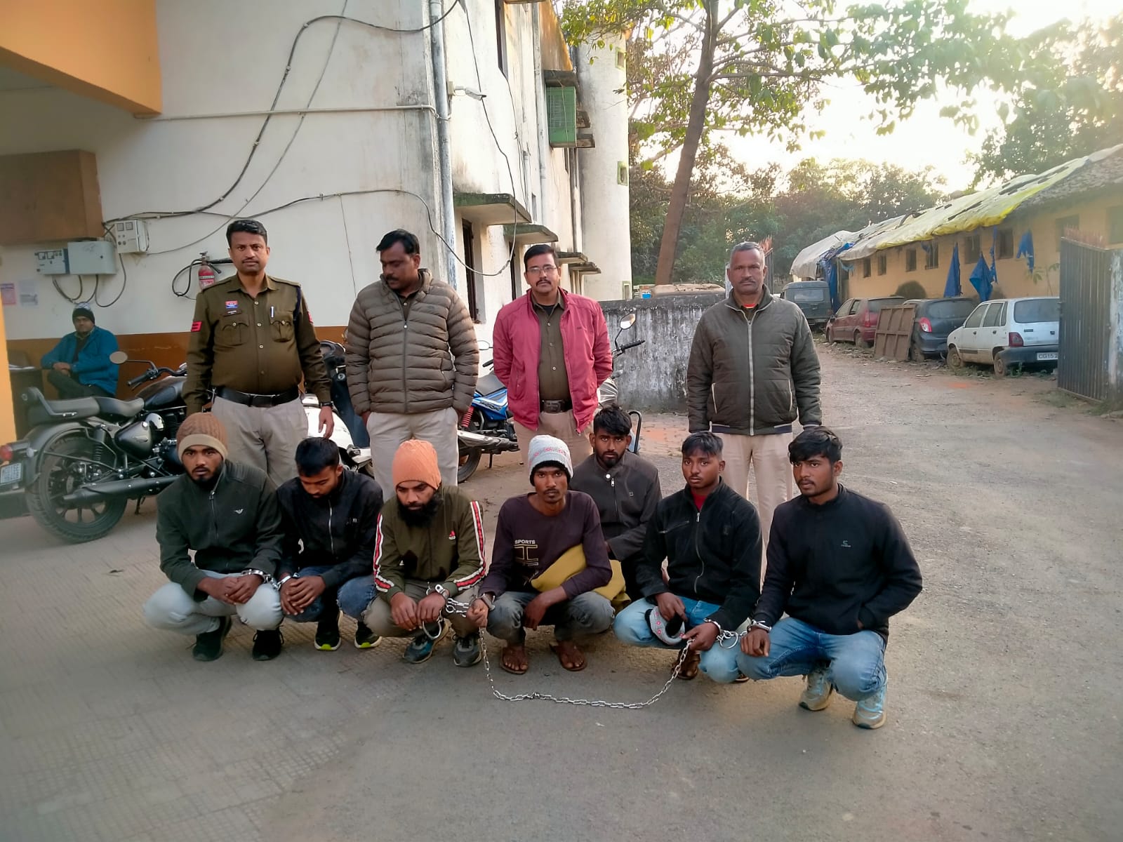 सातों से नाम पता व घटना के संबंध में मौखिक पुछताछ किये जाने पर टाल मटोल करते कोई जबाब नहीं दिया जाने लगा। प्रकरण में प्रार्थी द्वारा बताये गये पिकप वाहन का नम्बर व कार का नम्बर मौके पर मिलने पर आरोपियों समेत वाहन को थाना लाकर जप्त किया गया।