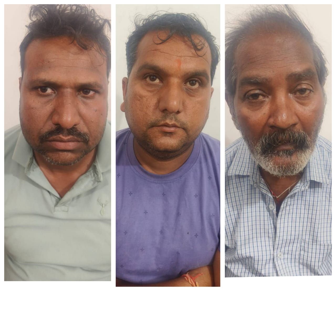 ⏩ सूचना पर पुलिस टीम द्वारा त्वरित कार्यवाही करते हुए मौके पर दबिश देकर आरोपियों की घेराबंदी कर कुल 03 आरोपियों कों मौक़े से जुआ खेलते पकड़ा गया,आरोपियों से पूछताछ करने पर अपना नाम *(01) पप्पू सोनी पिता स्व. विजय शंकर सोनी उम्र 35 वर्ष साकिन पुराना बस्ती सीतापुर (02) अश्वनी दास पिता अमर दास उम्र 59 वर्ष साकिन सोनतराई मेन रोड़ सीतापुर (03)इरफ़ान खान पिता अब्दुल खान उम्र 38 वर्ष साकिन सोनतराई सीतापुर* का होना बताये आरोपियों के कब्जे से कुल 11000/- रुपये नगद एवं ताश का 52 पत्ता जप्त किया गया हैं, आरोपियों का कृत्य सदर धारा का होना पाये जाने से थाना सीतापुर मे अपराध क्रमांक 148/25 धारा छत्तीसगढ़ जुआ प्रति.अधिनियम की धारा 3 के तहत अपराध पंजीबद्ध कर आरोपियों कों गिरफ्तार कर मामले मे अग्रिम वैधानिक कार्यवाही की जा रही हैं।