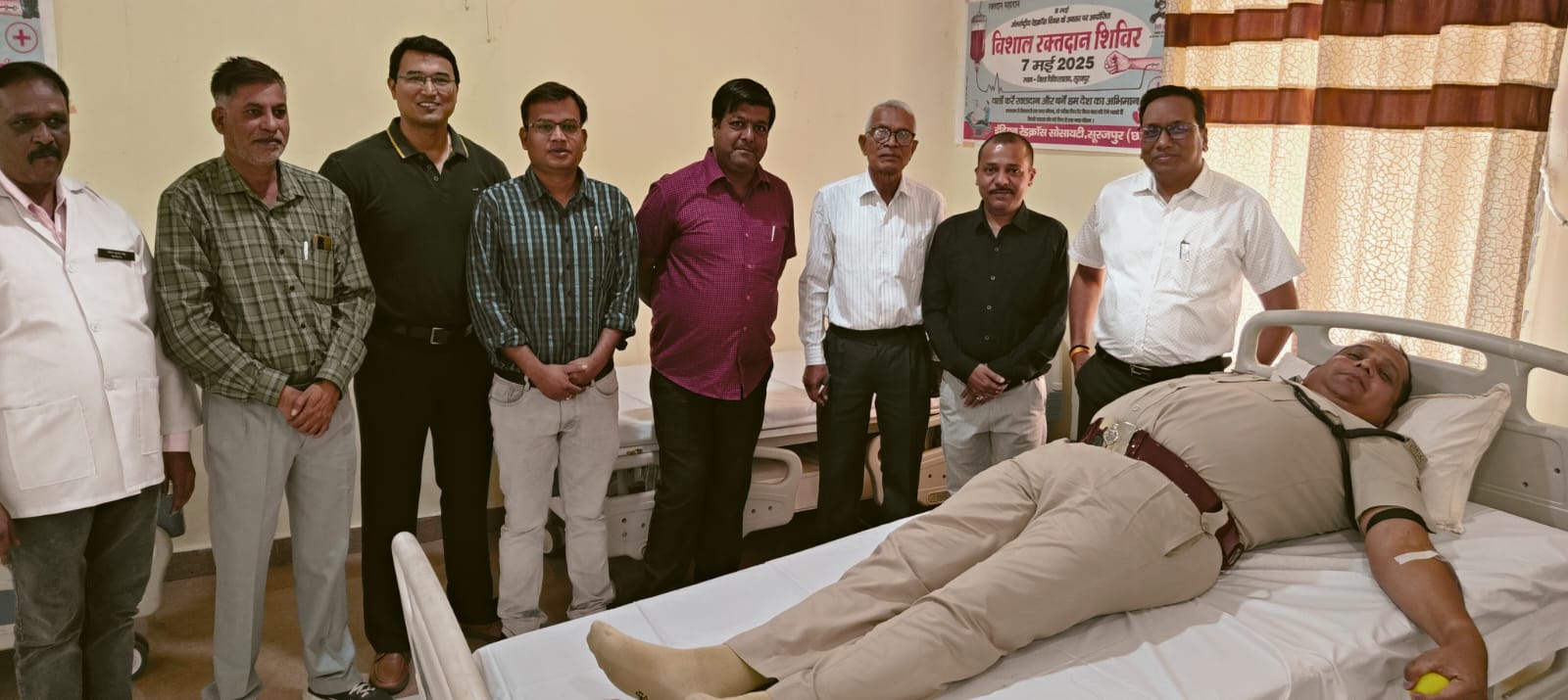 सरगुजा समय सूरजपुर। बुधवार, 07 मई 2025 को भारतीय रेड क्रॉस सोसाइटी के द्वारा रक्तदान शिविर का आयोजन जिला चिकित्सालय में किया गया। डीआईजी व एसएसपी सूरजपुर श्री प्रशांत कुमार ठाकुर ने पुलिस के अधिकारी व जवानों को दूसरों की जीवन बचाने के लिए उपयोगी रक्त का दान करने के निर्देश दिए थे।