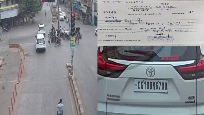 बिलासपुर। पुलिस अधीक्षक बिलासपुर रजनेश सिंह एक कार्यक्रम में शामिल होने के लिए कलेक्टर अवनीश शरण के साथ उनकी गाड़ी से जा रहे थे। उनके कुछ दूर पीछे पुलिस अधीक्षक का वाहन चालक भी एसपी साहब की गाड़ी चलाते हुए आ रहा था। सत्यम चौक पर कलेक्टर का वाहन क्रॉस होने के बाद सिग्नल रेड हो गया। पुलिस अधीक्षक के वाहन चालक द्वारा सिग्नल जंप कर दिया गया। यह घटना ITMS के कैमरे में कैद हो गई और पुलिस अधीक्षक को तत्काल मैसेज के माध्यम से चालान कटने की जानकारी प्राप्त हुई। जिसके बाद SP रजनेश सिह ने एक अच्छे नागरिक का परिचय देते हुए ऑनलाइन 2000 रूपये का चालान पटा दिया, और इसकी रसीद भी थाने से प्राप्त कर ली।