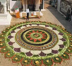 खैरागढ़ के रहने वाले चमन डाकलिया ने अपने जन्मदिन पर मनोहर गौ शाला में इसके जरिए गौ सेवा करने का मैसेज दिया। इस माैके पर 2000 किलो सब्जी और फलों का इस्तेमाल किया गया है। 8 घंटे की मेहनत से कलाकारों ने एक विशाल रंगोली इन सब्जियों से तैयार की। सब्जी के रंगों से इसे सजाया गया। 200 गायों ने इसके बाद सब्जी और फल खाए। बता दे की चमन पिछले 9 साल से ऐसा कर रहे हैं, कभी वो गायों को 100 रोटी बनाके खिलाते है तो कभी ड्राय फ्रूट की दावत देते हैं