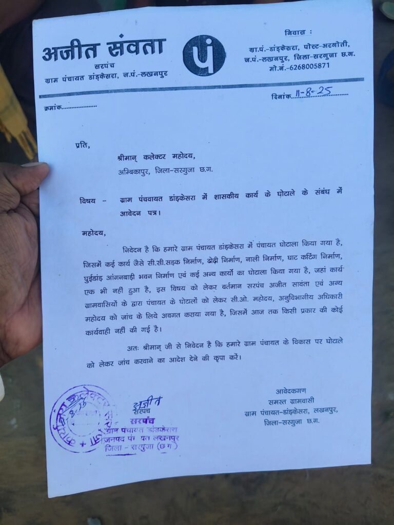 सरपंच अजीत सवता के नेतृत्व में ग्रामीणों ने मे 2025 में निर्माण कार्य किए बिना ही राशि गवन किए जाने की शिकायत जनपद के तत्कालीन को वेद प्रकाश पांडे अनुविभागीय अधिकारी राजस्व की गई थी। जांच नहीं होने की स्थिति में नवंबर 2025 में सरपंच और ग्रामीणों के द्वारा कलेक्टर से शिकायत कर जांच कर उचित कार्रवाई की मांग की गई थी।
