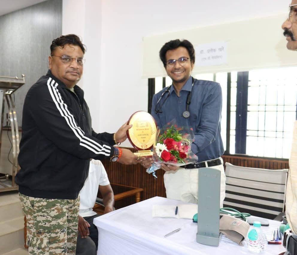 पुलिस के अधिकारियो कर्मचारियों द्वारा लगातार अपने कर्तव्यों का निर्वहन करने एवं अनिश्चित ड्यूटी के चलते पुलिसकर्मी एवं उनके परिवार के सदस्य अपनी स्वास्थ्य सम्बन्धी समस्याओं के लिए पर्याप्त रूप से समय नहीं दे पाते है, जिससे पुलिस के जवानों एवं परिवारजनो कों किसी ना किसी प्रकार की स्वास्थ्य सम्बन्धी परेशानिया बनी रहती हैं, *अधिकारियो / कर्मचारियों की स्वास्थ्य सम्बन्धी परेशानियों कों संज्ञान में लेकर वरिष्ठ पुलिस अधीक्षक सरगुजा राजेश कुमार अग्रवाल (भा.पु.से.) द्वारा पुलिस वेलफेयर से बृहद निशुल्क चिकित्सा स्वास्थ्य परीक्षण, परामर्श, औषधि वितरण शिविर का सुव्यवस्थित सकारात्मक आयोजन किये जाने के दिशा निर्देश दिए गए थे*, इसी क्रम मे आज दिनांक को रक्षित केंद्र अम्बिकापुर मे एक दिवसीय निशुल्क स्वास्थ्य शिविर का आयोजन किया गया, शिविर के प्रारम्भ होने के दौरान वरिष्ठ पुलिस अधीक्षक सरगुजा द्वारा सभी वरिष्ठ चिकित्सकों एवं विशेषज्ञ डॉक्टरों कों पुष्प गुच्छ देकर स्वागत सम्मान किया गया।