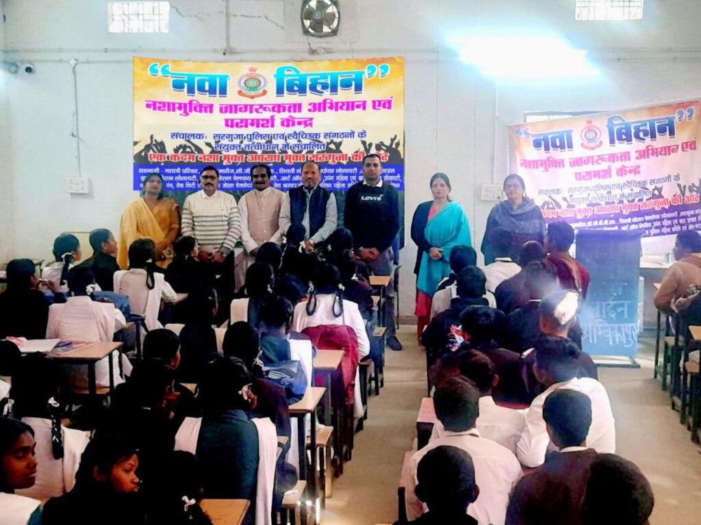 वरिष्ठ पुलिस अधीक्षक सरगुजा राजेश अग्रवाल के मार्गदर्शन एवं अतिरिक्त पुलिस अधीक्षक अमोलक सिंह ढिल्लो के नेतृत्व में संचालित नवा बिहान नशामुक्ति जागरूकता अभियान एवं परामर्श केंद्र सरगुजा के द्वारा वरिष्ठ समाजसेवी अजय तिवारी काउन्सलर नवा बिहान एवं कर्मयोग राज्य समन्वयक आर्ट ऑफ लिविंग छत्तीसगढ़ के अध्यक्षता में शासकीय उच्चतर माध्यमिक विद्यालय पुलिस लाइन अम्बिकापुर के सभा कक्ष में छात्र -छात्राओं को जागरूक करने के उद्देश्य से नशामुक्ति, यातायात,साइबर अपराध एवं साइबर अपराध से सुरक्षा के संबंध में जागरूकता कार्यक्रम आयोजित किया गया।