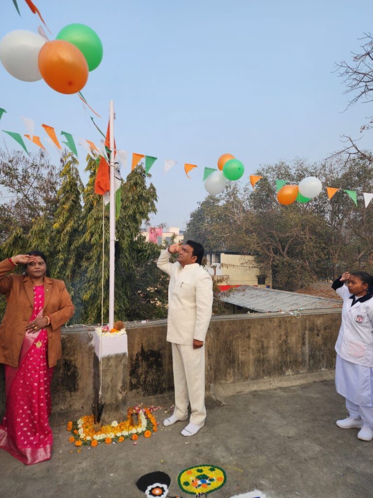 सरगुजा समय अंबिकापुर :- आज पूरा भारत देश 77 गणतंत्र दिवस के अवसर मे देश भक्ति के रंग से सराबोर है, इसी अवसर पर आज स्वास्थ्य सेवाएं के सयुक्त संचालक डॉ. अनिल शुक्ला नें ध्वजरोहण करते हुए इस देशभक्ति के रंग मे डूबते दिखें।