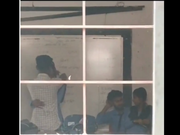 कांकेर। जिले से सरकारी स्कूल के चपरासी का नया कारनामा सामने आया है। बताया जा रहा है कि यहां के एक सरकारी स्कूल का चपरासी स्कूल की ही छात्रा के साथ गंदी हरकत करते हुए कैमरे में कैद हो गया। वीडियो में क्लास रूम में चपरासी और छात्रा रोमांस करते हुए नजर आ रहे हैं। इसके साथ ही बगल में एक लड़का कुर्सी पर बैठ हुआ है, उसके ऊपर एक लड़की भी बैठी हुई है। चपरासी और छात्रा सच में क्लास रूम में रोमांस कर रहे हैं। इस अश्लील हरकत का वहीं के युवक ने वीडियो बना लिया, जो अब सोशल मीडिया पर वायरल हो रहा है। स्कूल में रोमांस का वीडियो वायरल होने के बाद चपरासी और छात्रा पकड़े गए हैं। बताया जा रहा है कि ये पूरा मामला कांकेर जिला के अंदरूनी इलाके के स्कूल का है।