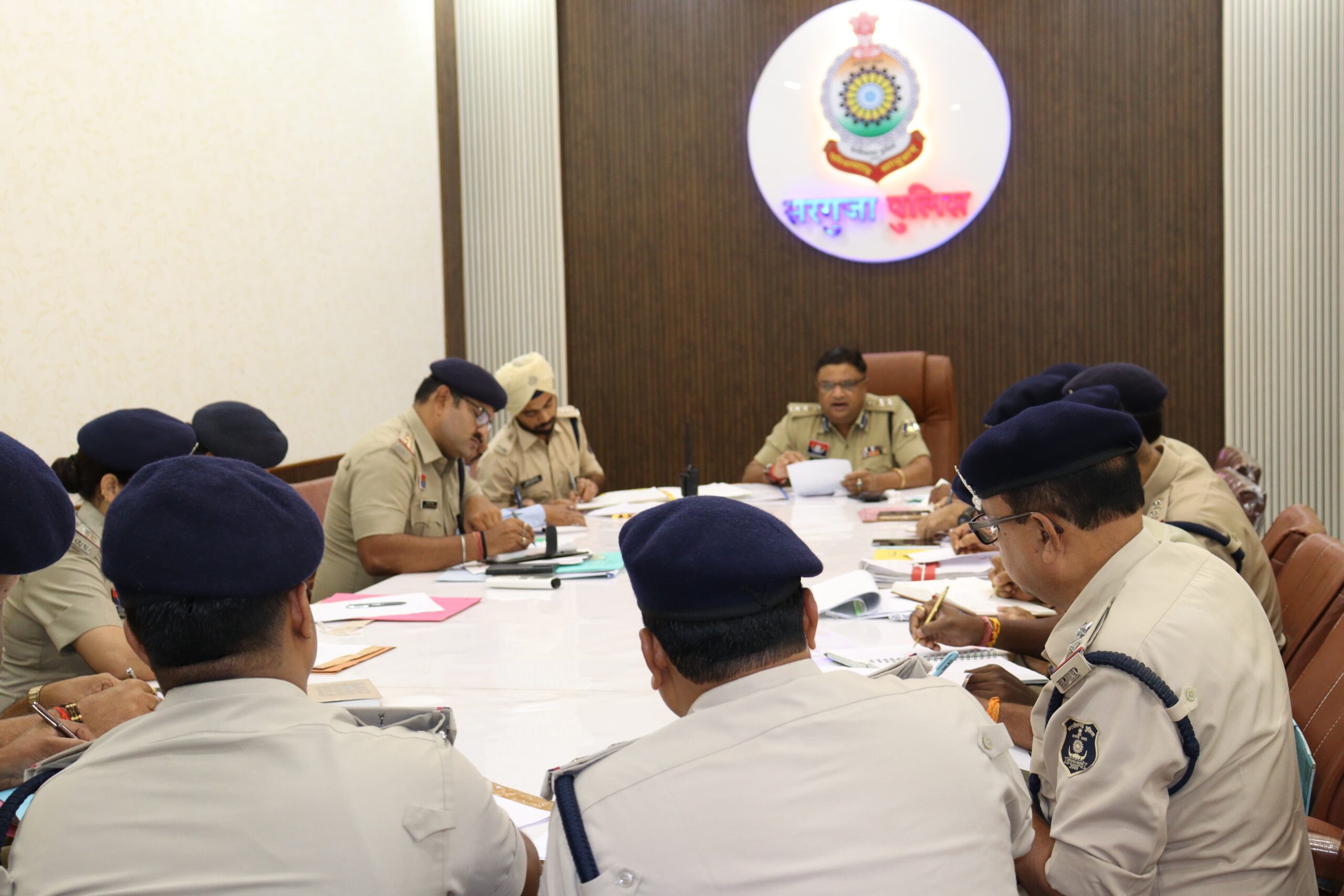 वरिष्ठ पुलिस अधीक्षक सरगुजा राजेश कुमार अग्रवाल (भा.पु.से.) के दिशा निर्देशन मे आज दिनांक कों पुलिस अधीक्षक कार्यालय के सभाकक्ष मे राजपत्रित पुलिस अधिकारियो समेत समस्त थाना/चौकी प्रभारियों की समीक्षा बैठक आयोजित की गई, समीक्षा बैठक मे वरिष्ठ पुलिस अधीक्षक सरगुजा द्वारा थानावार लंबित अपराध, चालान, शिकायत, मर्ग की जानकारी थाना/चौकी प्रभारियों से ली गई, वरिष्ठ पुलिस अधीक्षक सरगुजा द्वारा प्रकरणों की समीक्षा करते हुए अपराधों के त्वरित निराकरण करने के दिशा निर्देश दिए गए, विवेचको कों प्रकरण कों अनावश्यक लंबित ना रखने की सख्त समझाईस दी गई।