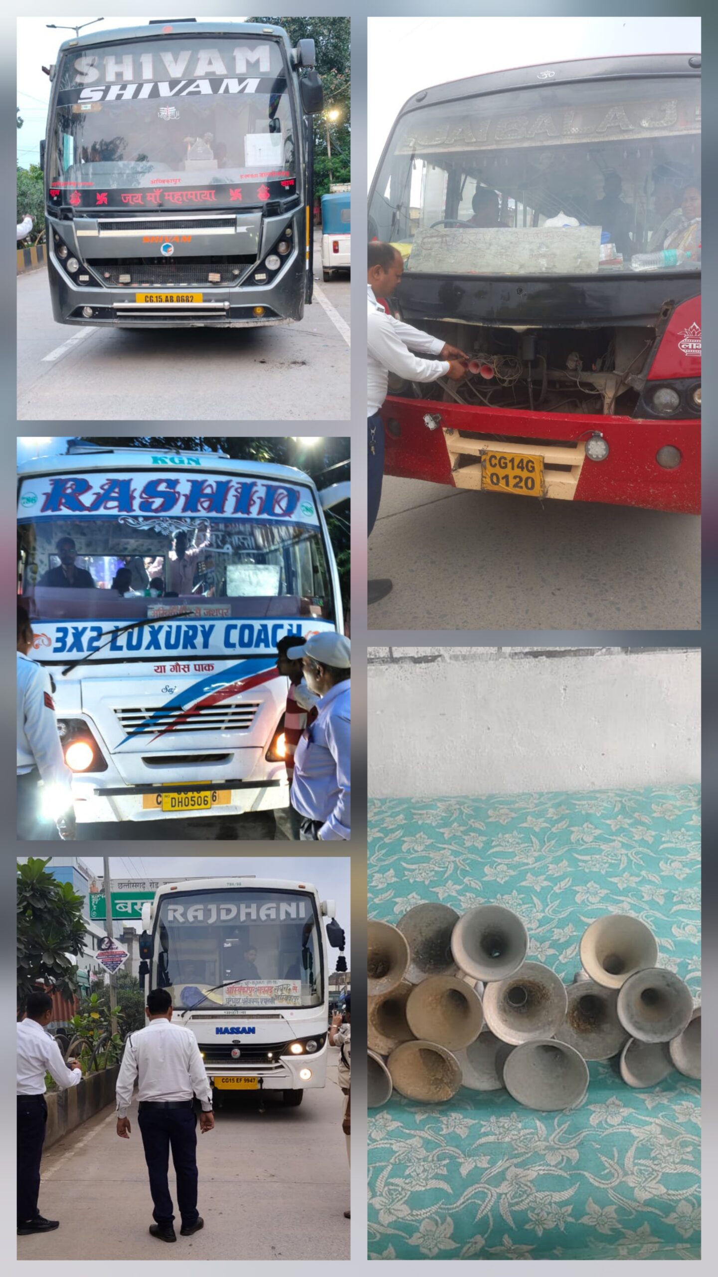 :- बसों मे लगे तेज आवाज़ वाले प्रेशर हॉर्न निकलवाकर निर्धारित आवाज़ वाले हॉर्न लगाने दी गई समझाइस।