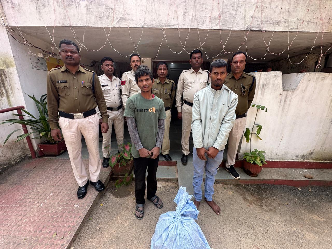 इसी परिप्रेक्ष्य में दिनांक 18/11/2024 के रात्रि में थाना रामानुजनगर पुलिस को मुखबीर से सूचना मिला कि सूरजपुर की ओर से एक मोटर सायकल में 3 व्यक्ति नशीली दवाई लेकर बिक्री करने प्रेमनगर की ओर जा रहे है। सूचना पर पुलिस ने ग्राम नारायणपुर में घेराबंदी लगाया इसी दौरान मोटर सायकल में 3 व्यक्ति आते दिखे जिन्हें रोकवाने का इशारा करने पर 1 व्यक्ति मोटर सायकल से कूदकर अंधेरे का फायदा उठाकर भाग निकला। पुलिस टीम ने मोटर सायकल सहित अजय साहू उर्फ जयप्रकाश उम्र 22 वर्ष निवासी ग्राम भुवनेश्वरपुर, थाना रामानुजनगर एवं रहमान ताज पिता समशुद्दीन उम्र 28 वर्ष निवासी ग्राम देवनगर, थाना सूरजपुर को पकड़ा जिसके कब्जे से 318 नग नशीली इंजेक्शन, 22 नग कफ सिरप व 550 नग टेबलेट पाया, जिसकी बाजारू कीमत करीब 1 लाख 85 हजार रूपये है। मामले में नशीली दवाई व मोटर सायकल जप्त कर धारा 21(सी) एनडीपीएस एक्ट के तहत कार्यवाही करते हुए दोनों आरोपियों को गिरफ्तार किया है। वहीं मामले में फरार 1 आरोपी की पतासाजी सरगर्मी से की जा रही है। इस कार्यवाही में थाना प्रभारी रामानुजनगर राजेन्द्र साहू, एएसआई मनोज पोर्ते, प्रधान आरक्षक सुशील तिवारी, हंसराम कनेडिया, आरक्षक दीपक यादव, महेंद्र सिंह, रूपदेव सिंह, सैनिक पंकज पटेल, रजनीश पटेल व देवचंद पाण्डेय सक्रिय रहे।