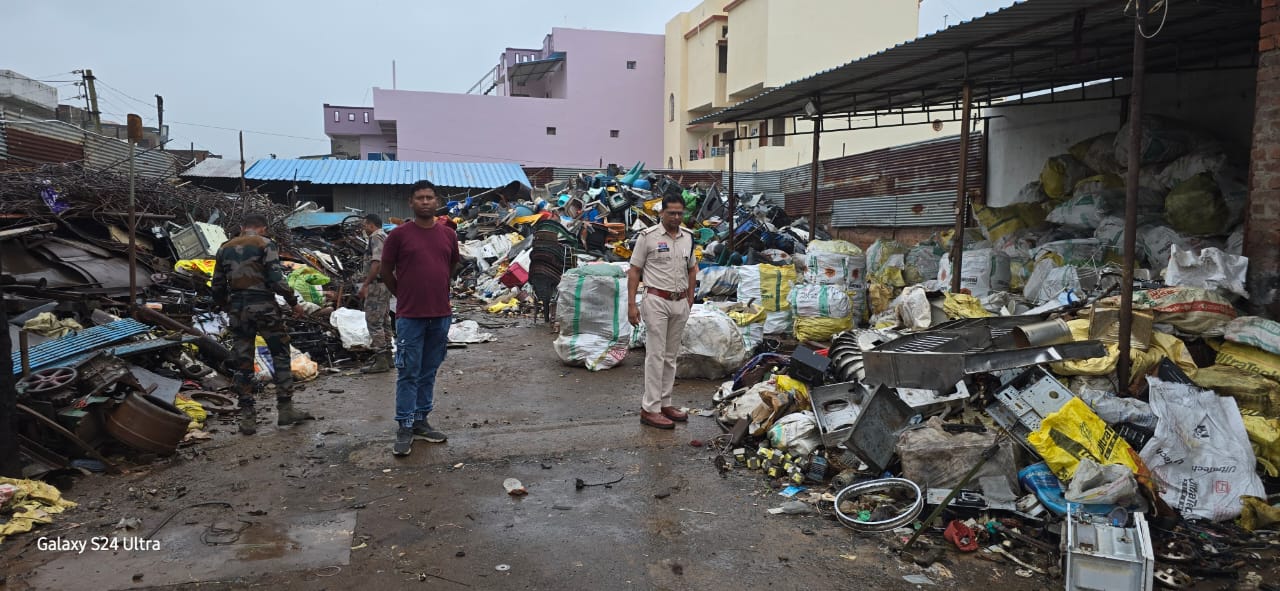 :- पुलिस टीम द्वारा सुबह सुबह कबाड़ गोदाम मे पहुंचकर रखे हुए सामानो की कि गई जांच।