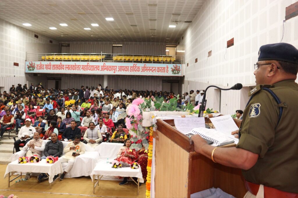 पुलिस मुख्यालय रायपुर के दिशा निर्देशन मे सड़क हादसों में कमी लाने और यातायात नियमों के पालन कराने हेतु 01 जनवरी से लेकर 31 जनवरी तक 37 वाँ राष्ट्रीय सड़क सुरक्षा माह का आयोजन जिले किया गया इस दौरान विभिन्न जागरूकता कार्यक्रम सहित वाहन चालकों परिचालको को सड़क सुरक्षा के प्रति जागरूक किया गया 01 जनवरी से लेकर 31 जनवरी तक चले जागरूकता कार्यक्रम का समापन पीजी कॉलेज स्थित ऑडिटोरियम में कलेक्टर एवं जिला दंडाधिकारी सरगुजा अजीत बसंत(भा.प्र.से), डीआईजी एवं एसएसपी सरगुजा राजेश कुमार अग्रवाल (भा.पु.से.),सभापति नगर निगम हरमिन्दर सिंह टिन्नी, एवं महापौर अंबिकापुर मंजूषा भगत के गरिमामयी उपस्थिति मे 37 वाँ सड़क सुरक्षा माह कार्यक्रम 2026 का समापन समारोह आयोजित किया गया।