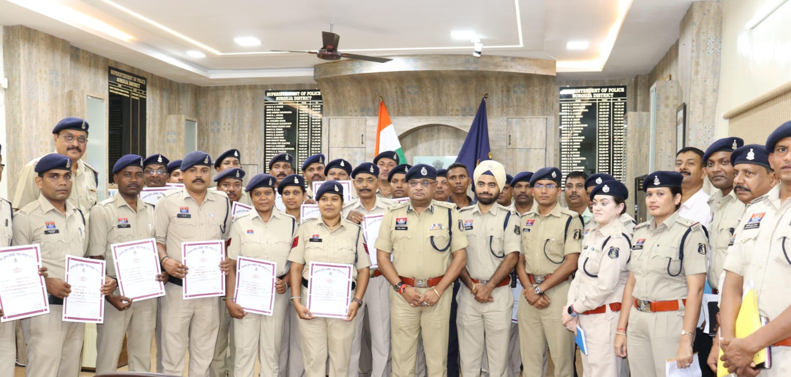 सरगुजा समय अंबिकापुर :- कार्यक्रम के दौरान कुल 21 पुलिस अधिकारियो/कर्मचारियों कों प्रशस्ति पत्र किया गया प्रदान।