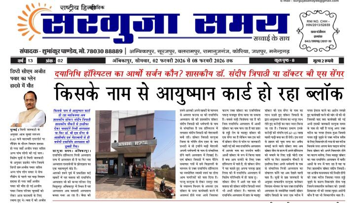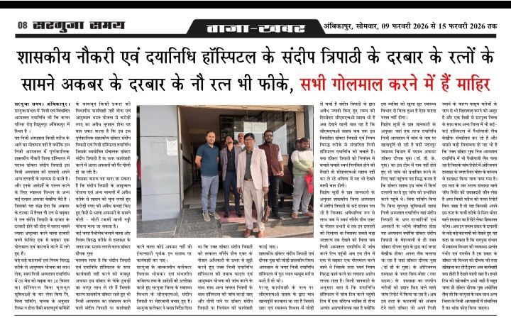 सरगुजा समय में प्रकाशित तमाम खबर कों सरगुजा कलेक्टर अजीत वसंत कों व्हाट्सप्प के माध्यम एवं अख़बार की प्रति उनके कार्यालय में भी पहुंचाया गया हैं जिसके बाद अब देखने वाली बात यह हैं की उक्त मामले में शासकीय डॉक्टर संदीप त्रिपाठी जो स्वयं नर्सिंग होम एक्ट के प्रभारी रहते हुए दयानिधि अस्पताल कों अवैध तरीके से लाभ पहुंचाया एवं आयुष्मान योजना का अनुचित तरीके से पंजीयन करवा करोड़ों का वारा न्यारा कर डाला की जाँच कर कार्यवाही कब होती हैं।
